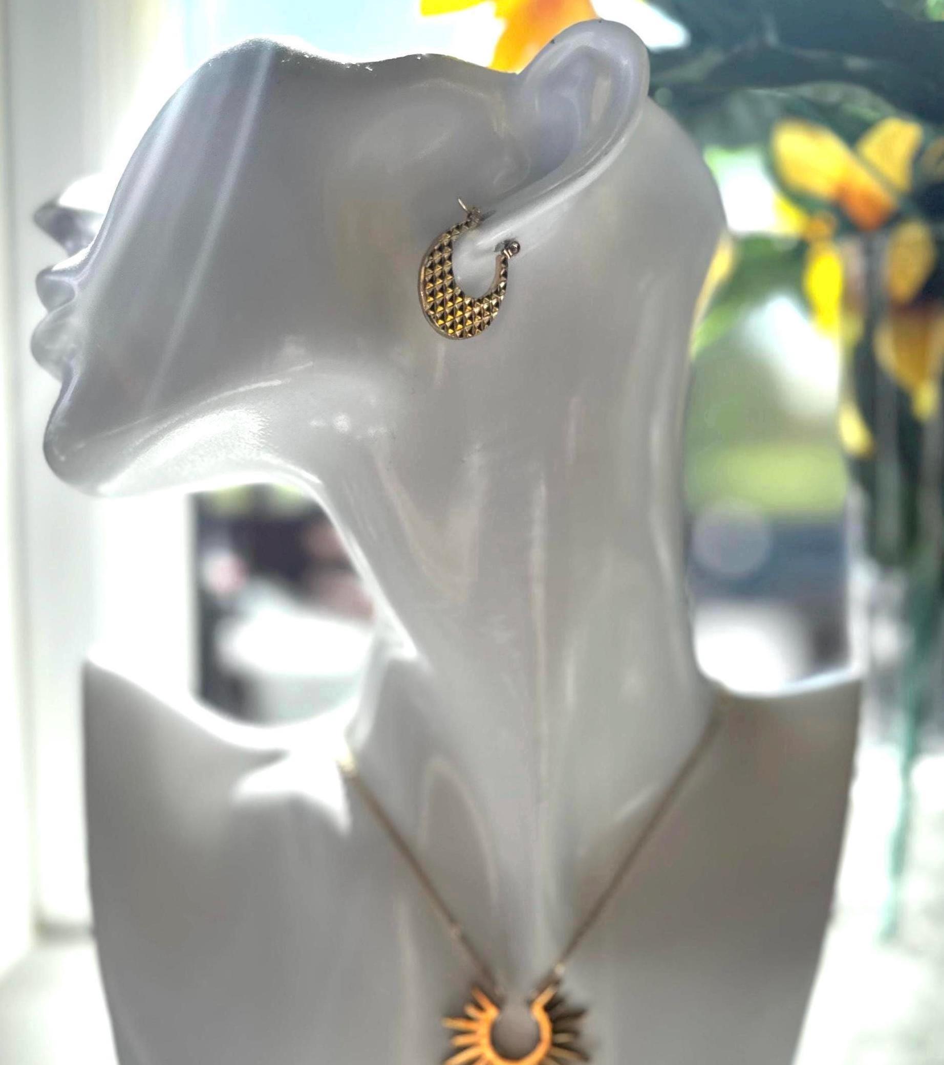 Turn heads with these stunning 18K gold-finish earrings, crafted for effortless elegance and everyday durability. Made from premium stainless steel and finished with long-lasting, tarnish-resistant gold plating, these earrings are 100% waterproof and hypoallergenic – perfect for sensitive ears and non-stop lifestyles.