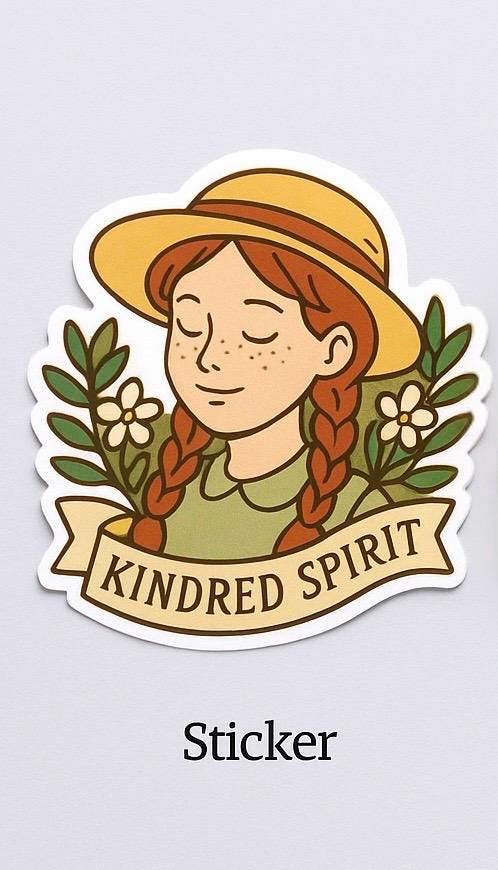 Let’s celebrate the joy of finding a true kindred spirit with this Anne of Green Gables inspired design, available as a vinyl sticker, keychain, fridge magnet and a badge pin!