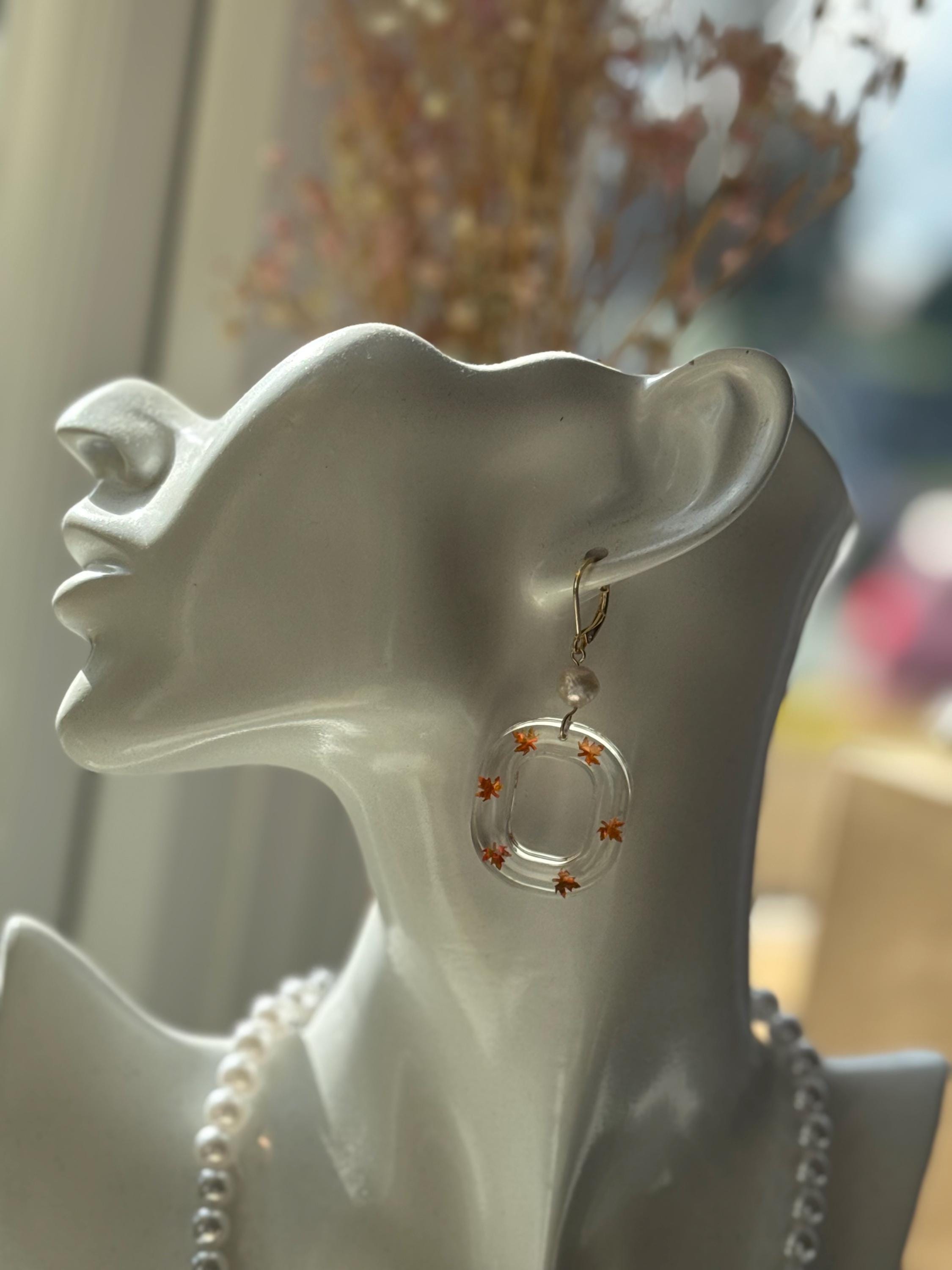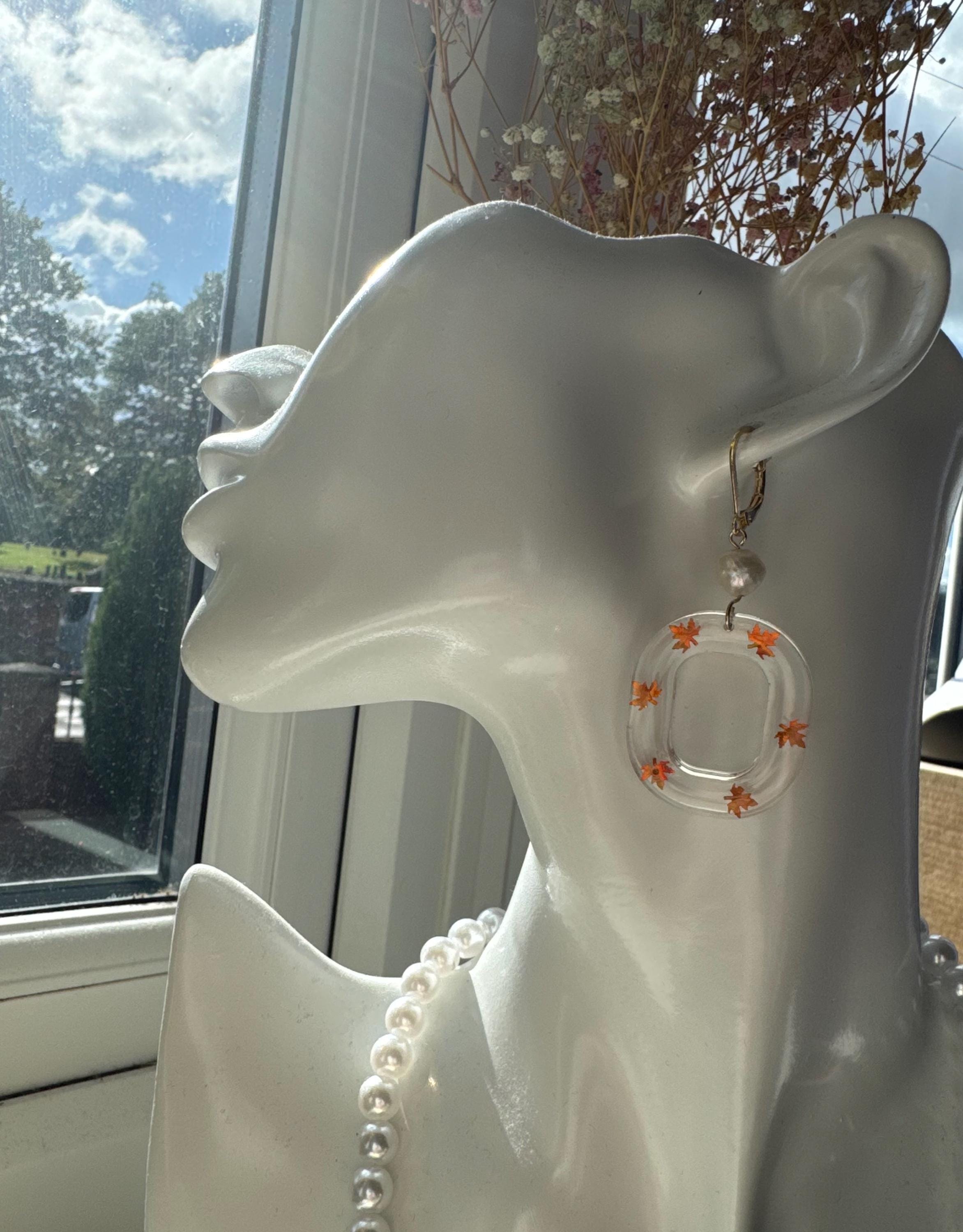 Celebrate the season of golden leaves and cozy days with these handcrafted square dangle earrings featuring a genuine freshwater pearl. The bold square silhouette paired with the natural elegance of pearl creates a look that’s both modern and timeless — a perfect statement piece for autumn and beyond.