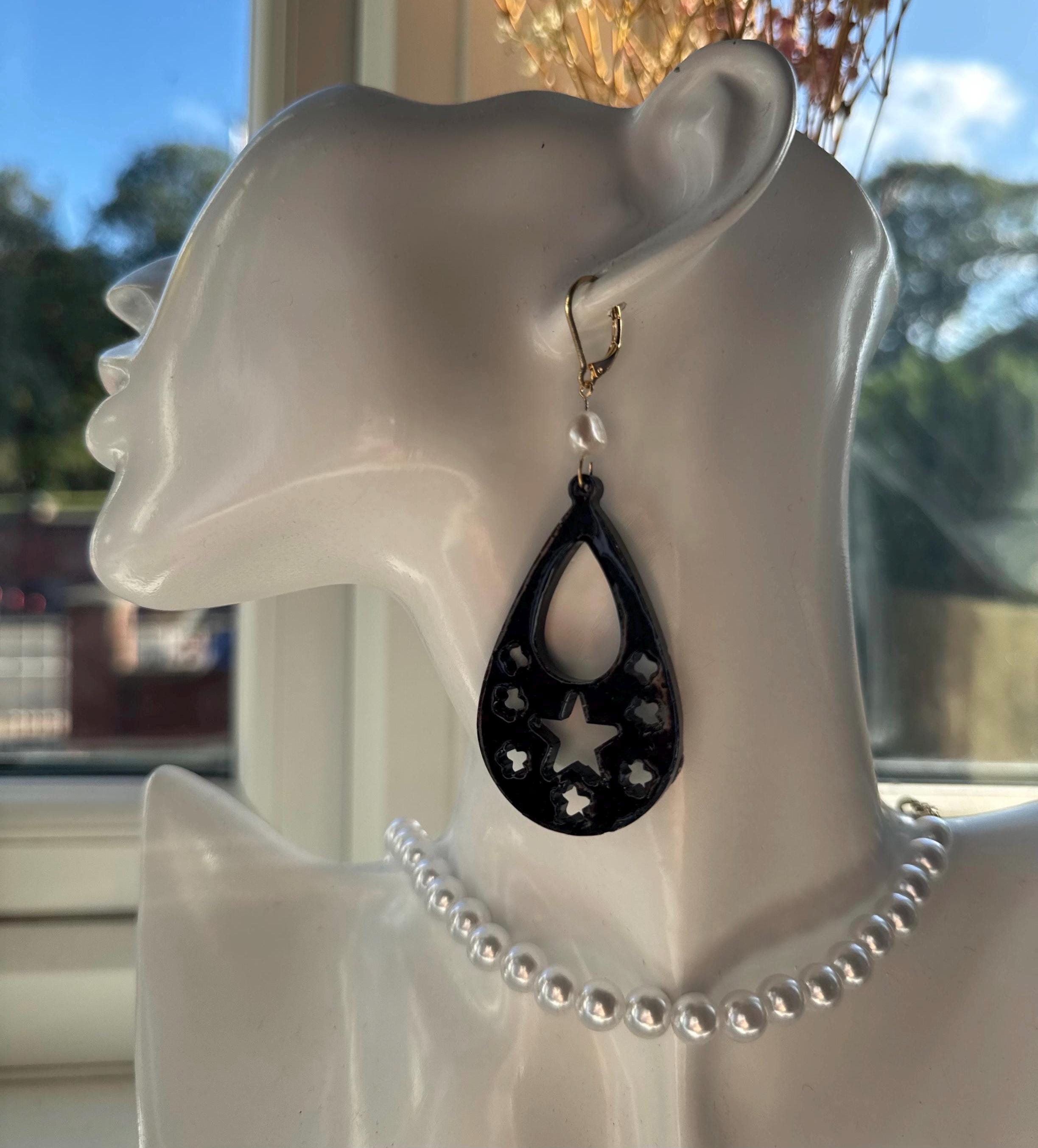 Add a touch of starlight and elegance to your look with these handmade star earrings featuring dangling freshwater pearls. Perfectly blending celestial charm with timeless beauty, these earrings are lightweight, unique, and designed to make you shine.