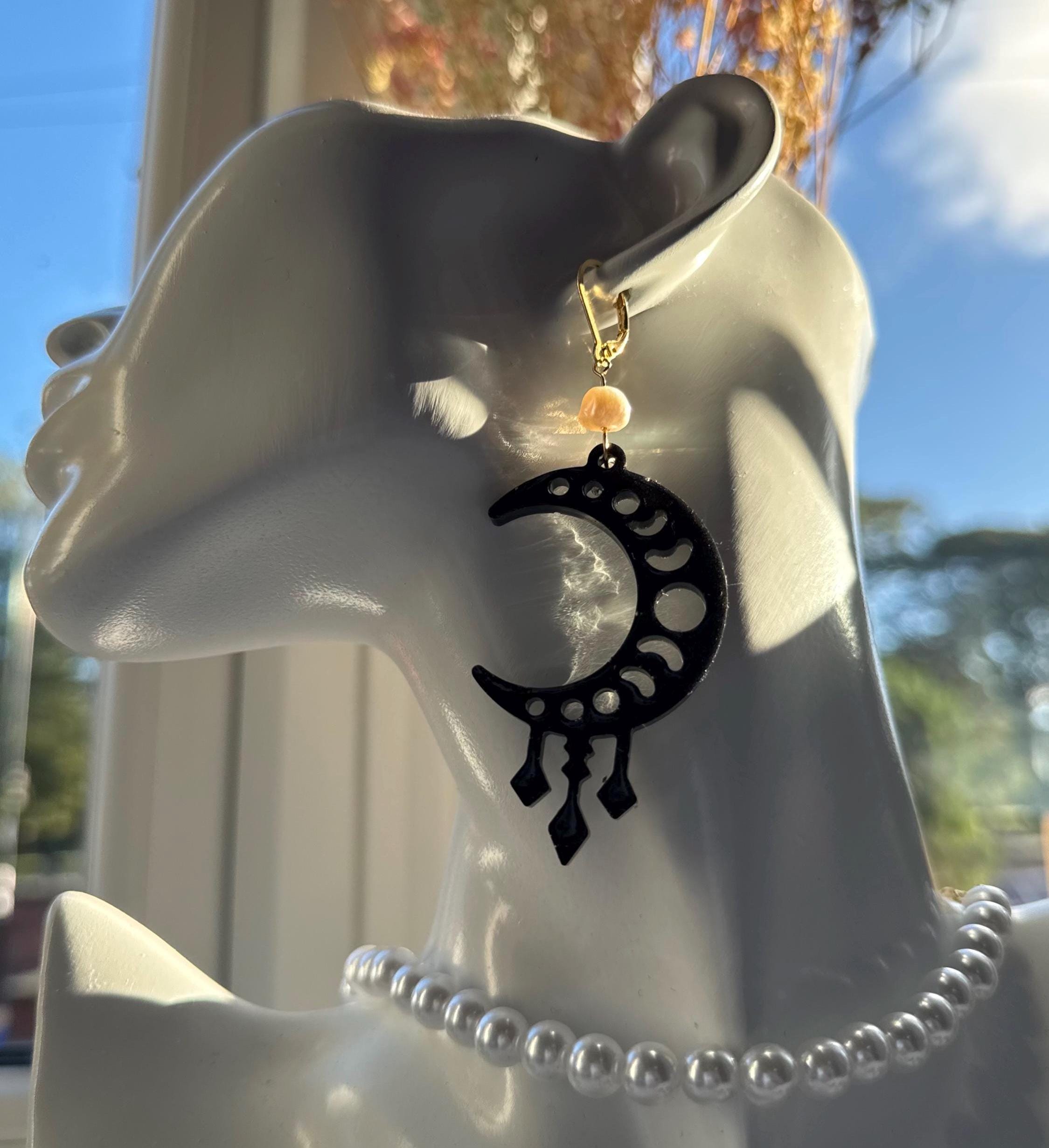 💫 Details: • Handmade with care and intention • Crescent moon + lunar phases design • Genuine freshwater pearl drop (each one unique) • Lightweight and comfortable for everyday or special occasions • Symbolic jewelry inspired by the night sky 🌌