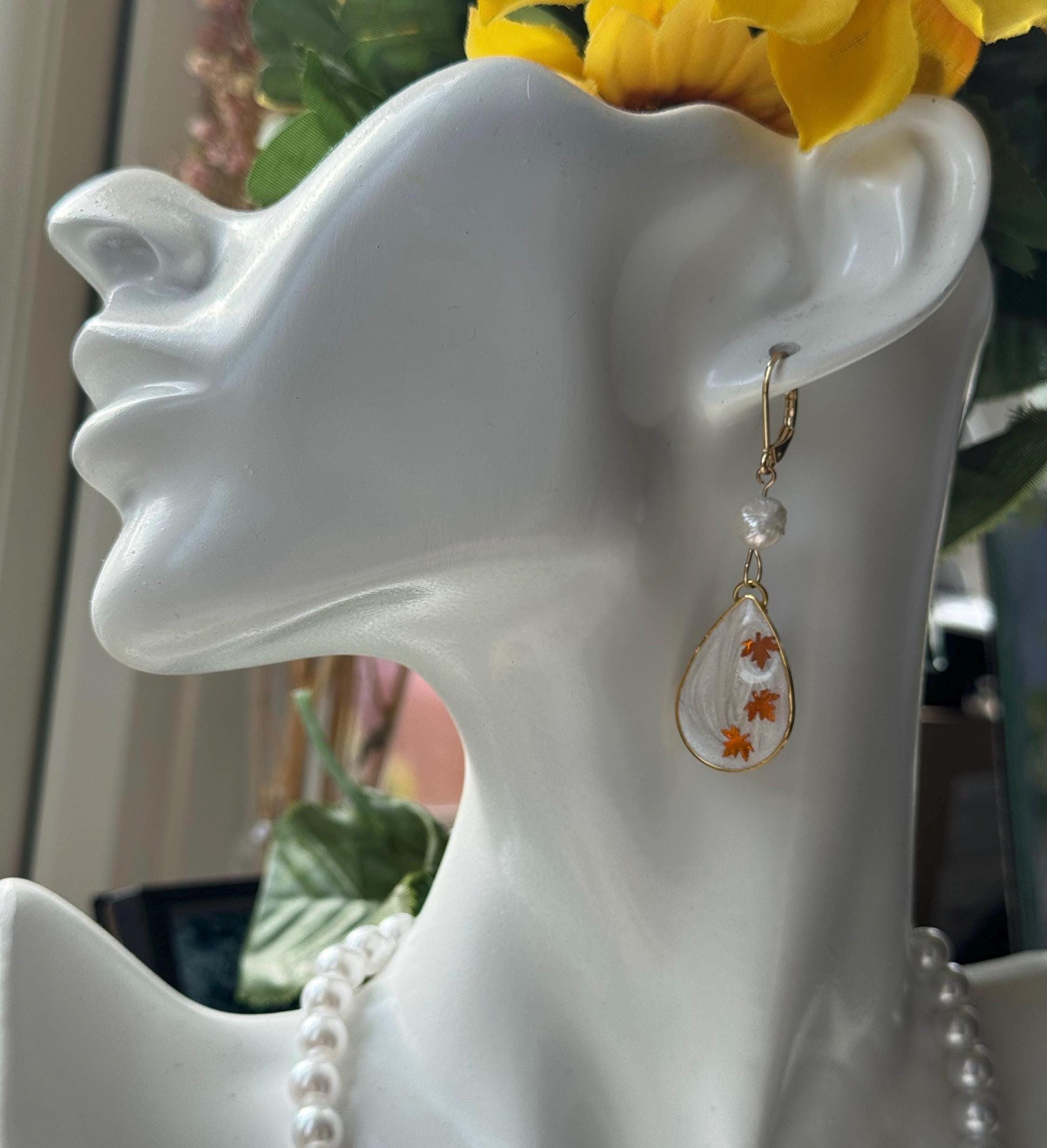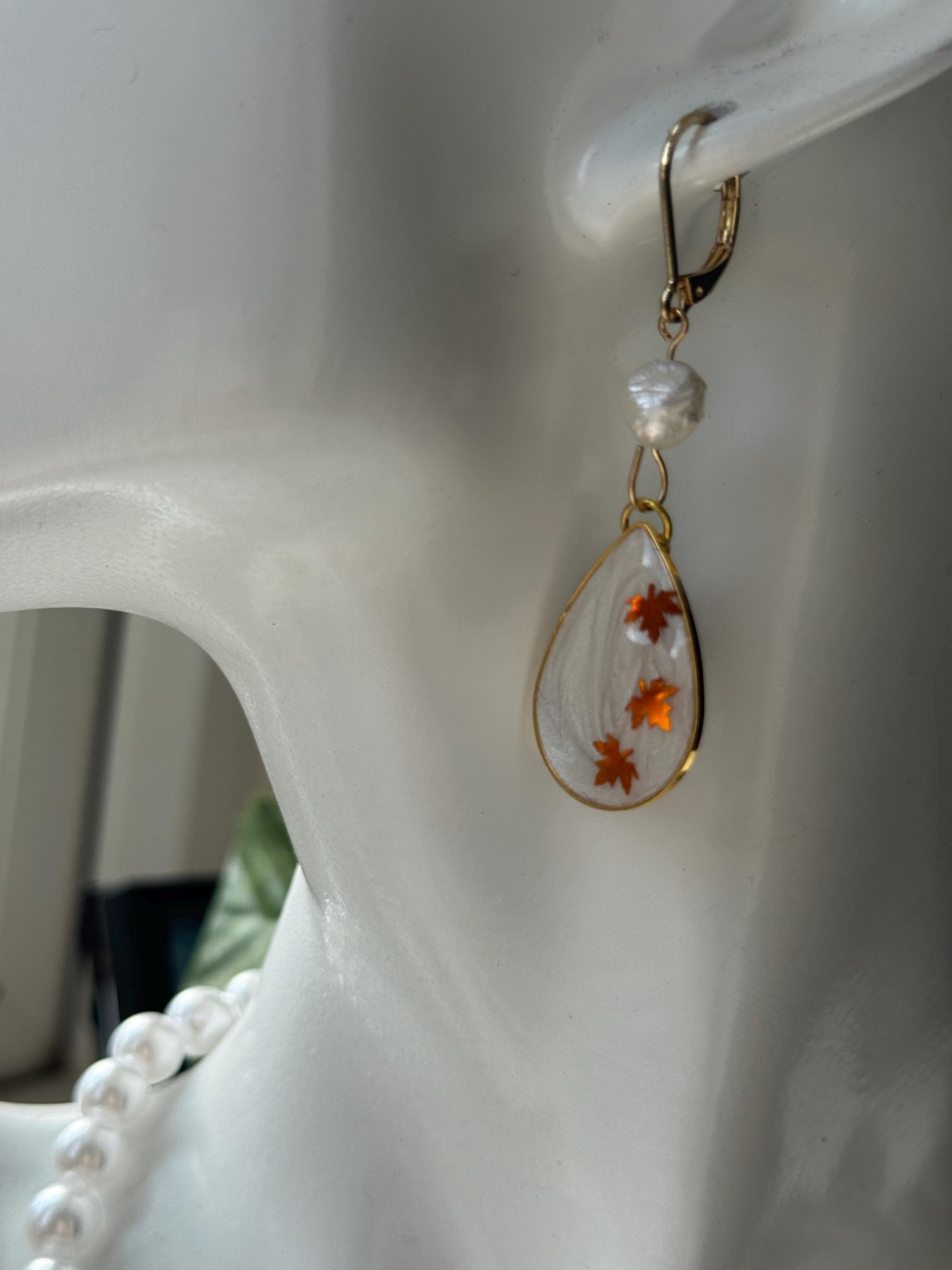 đ Handmade Autumn-Inspired Earrings đ Celebrate the beauty of fall with these one-of-a-kind dangling earrings, carefully handcrafted with love. Featuring lustrous freshwater pearls and warm, autumn-inspired accents, these earrings bring the perfect mix of elegance and earthy charm.